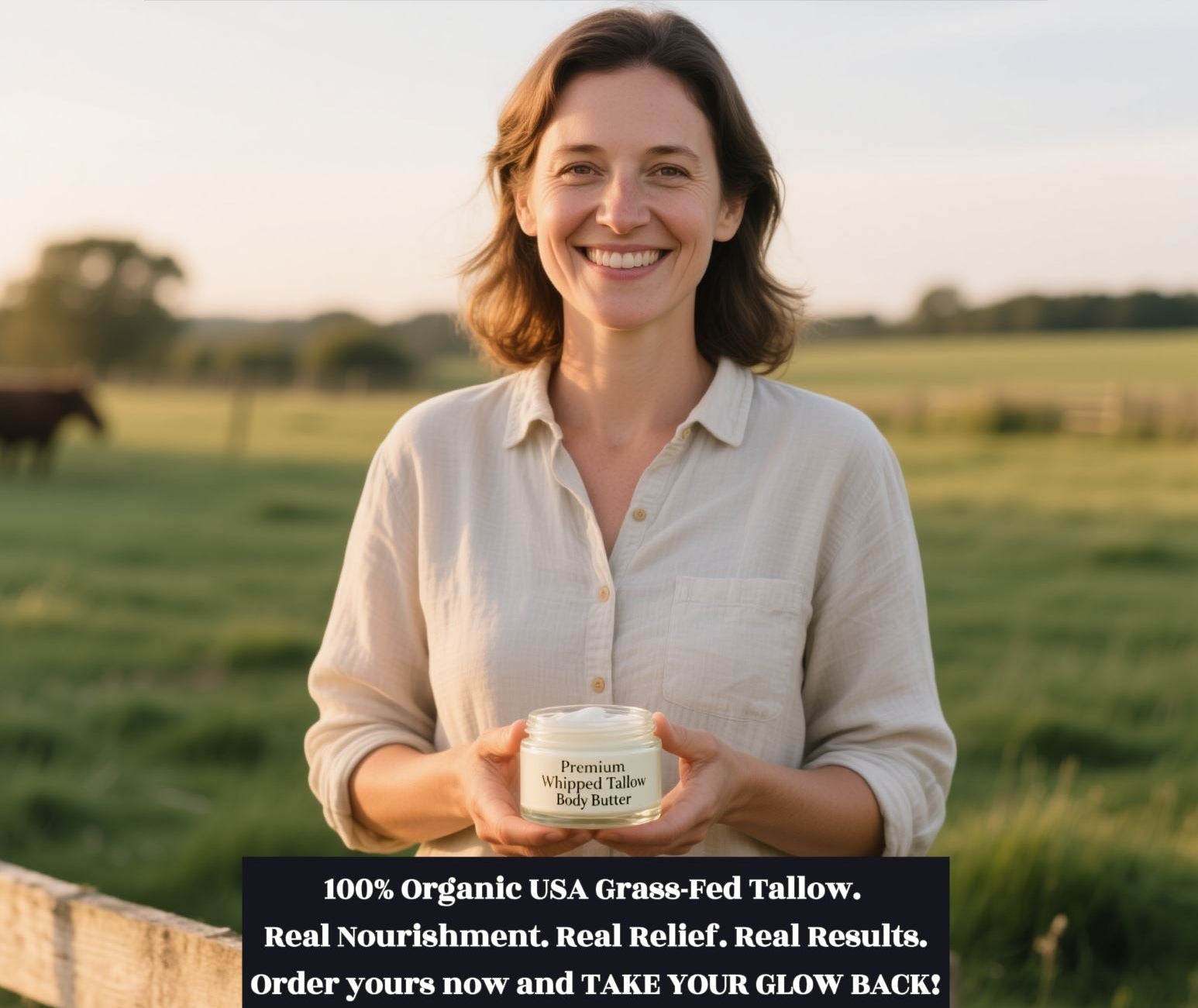 Our formulations are rooted in organic, grass‑fed tallow — a nutrient‑dense moisturizer used for generations to heal and replenish skin naturally. No toxins. No fillers. No chemicals.