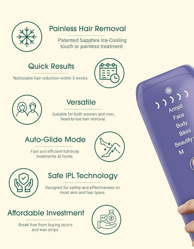 ✨ At-home, salon-inspired IPL hair removal for smooth, stubble-free skin